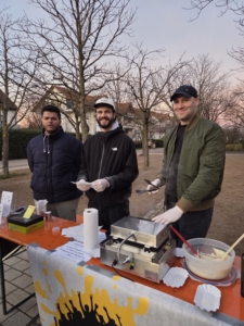 Die Weihnachtsbaum-Aktion gelang nur so gut durch aktive Mitarbeit von Mitbürgern aus unserem Stadtteil. Insbesondere gilt unser Dankesgruß dem Gemeindeteam der katholischen Kirche St. Albert (Kinderpunsch), Pfadfinder St. Albert (Feuerschale um sich aufzuwärmen) und dem Jugendzentrum Chummy (Waffeln). Sachspenden haben wir für das Gelingen dieser Veranstaltung erhalten von folgenden Unternehmen aus unserem Stadtteil: Bäckerei Heitzmann (Weckmänner), Bäckerei Grossmann (Weckmänner) und Frischemärkte Danner (Glühwein).